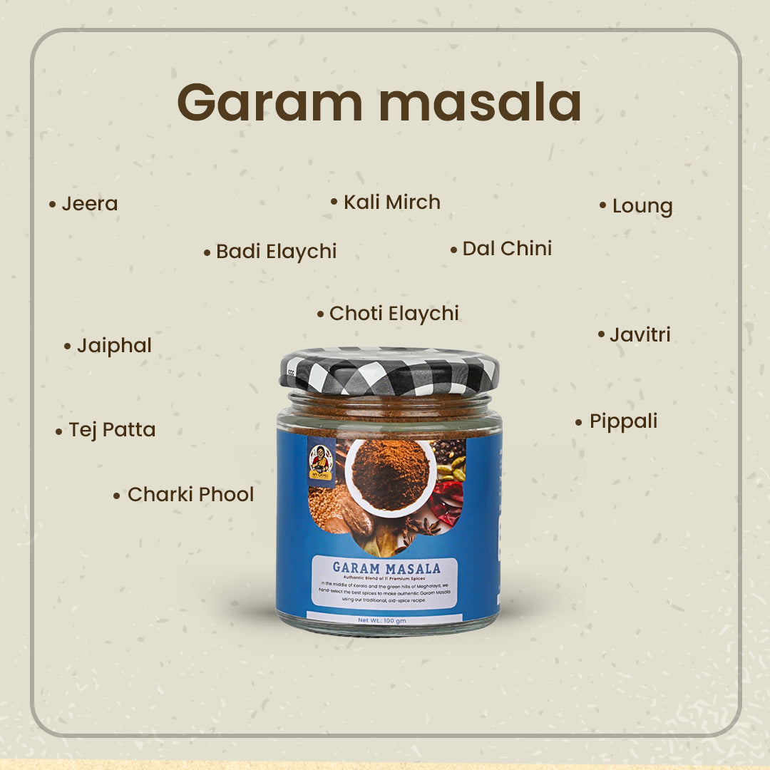 Every pinch of our Garam Masala is more than a spice. It is an experience steeped in tradition and flavor, hand-pounded to perfection in the hills of Kerala and Meghalaya.